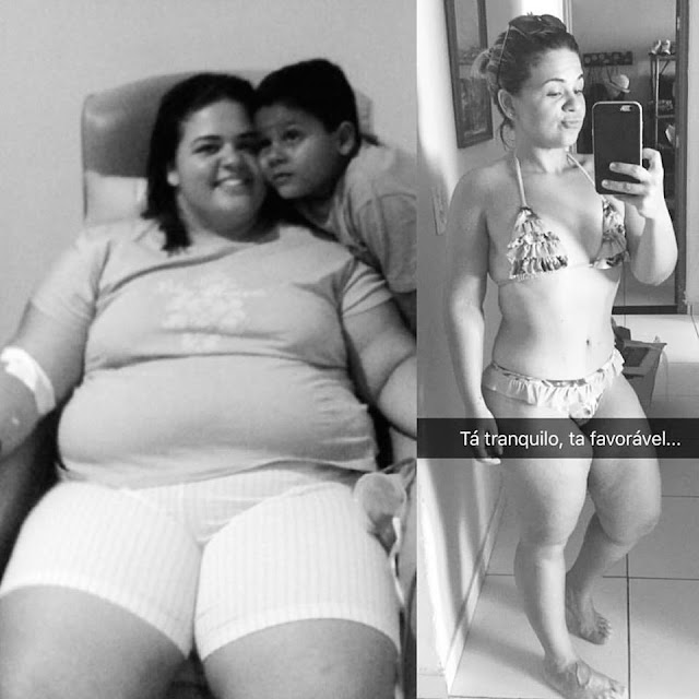 O antes, ainda no hospital no pós gastro e o depois é hoje em dia, com os kg’s extras