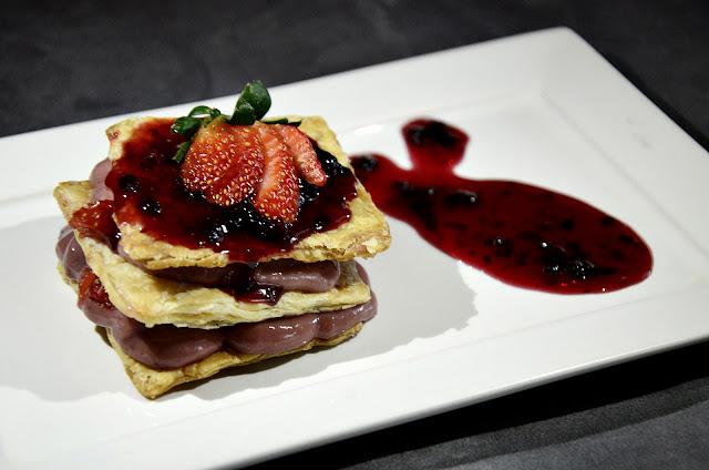 Para os amantes dos doces, a sugestão de dar água na boca é a Mil Folhas de Morango (mil folhas recheada de creme com morango, morango frescos e calda de chocolate cítrica).